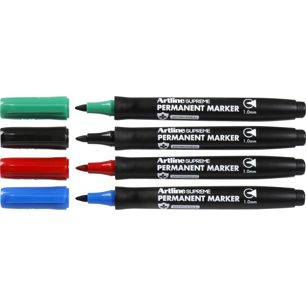 Artline Supreme Permanent Marker Bullet 1mm Assorted Colours Pack Of 4
