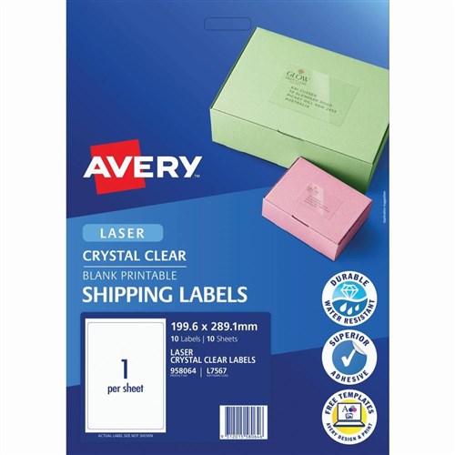 Avery Crystal Clear Laser Address Labels 199.6x289.1mm 1UP 10 Labels 10 Sheets