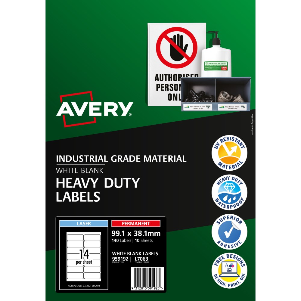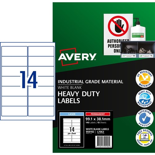 Avery Heavy Duty Waterproof Labels White Laser L7063 99.1 x 38.1mm 14UP 140 Labels
