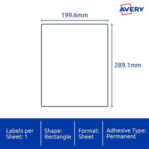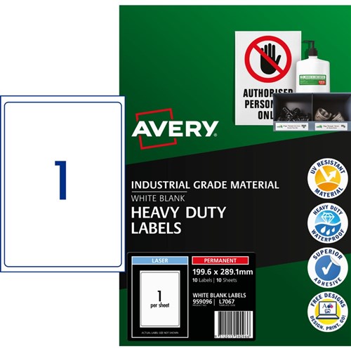 Avery Identification Laser Heavy Duty White L7067 199.6x289.1mm 1UP 10 Labels