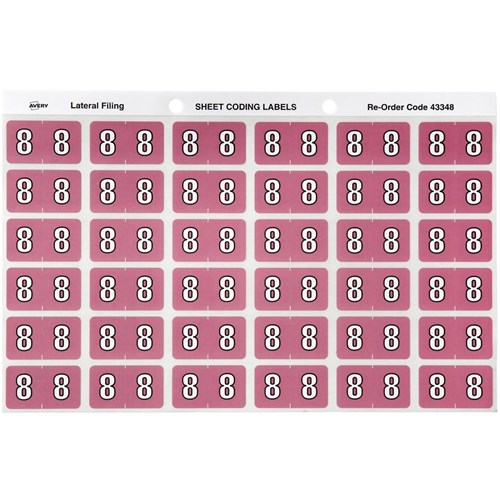 Avery Numeric Coding Label 8 Side Tab 25x38mm Mauve Pack Of 180