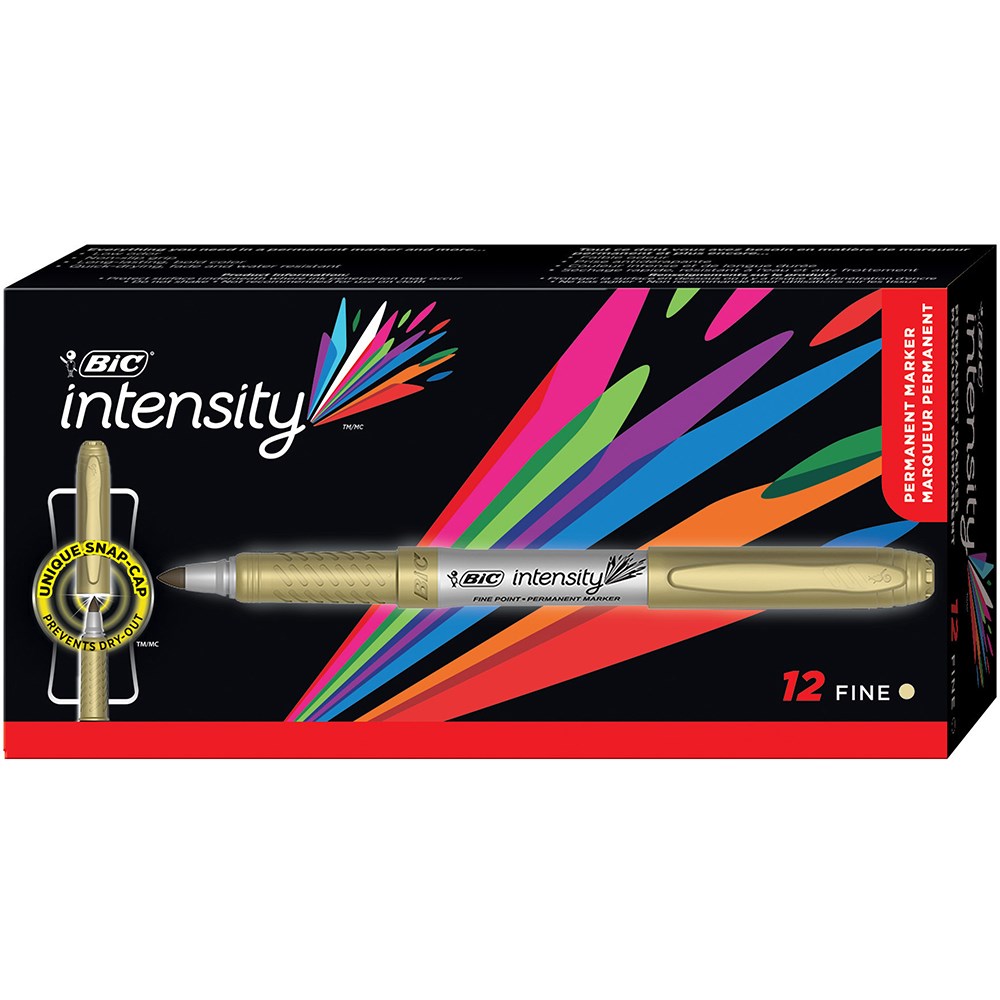 Bic Intensity Permanent Marker Fine Metallic Gold Box 12