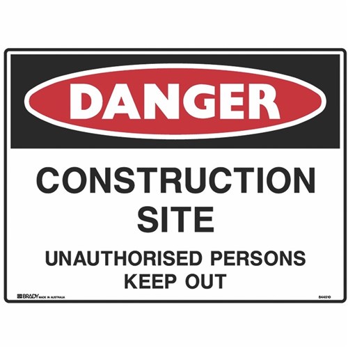 Brady Danger Sign Construction Site Unauthorised Persons Keep Out 600W x 450mmH Metal
