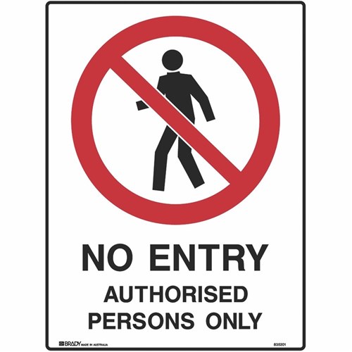 Brady Prohibition Sign No Entry Authorised Persons Only 450Wx600mmH Metal White/Black