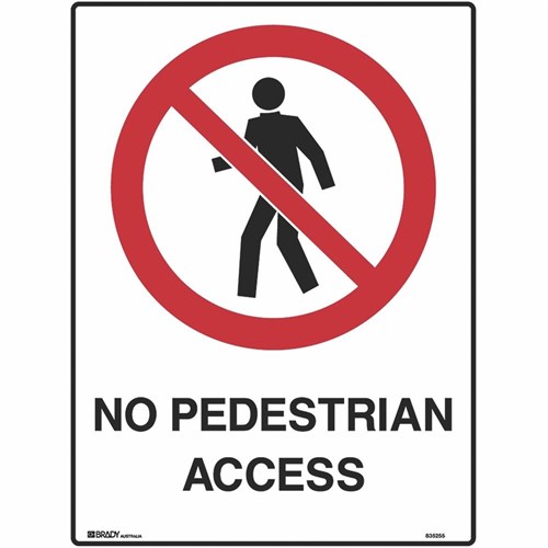 Brady Prohibition Sign No Pedestrian Access 450 x 600mmH Metal White/Red/Black