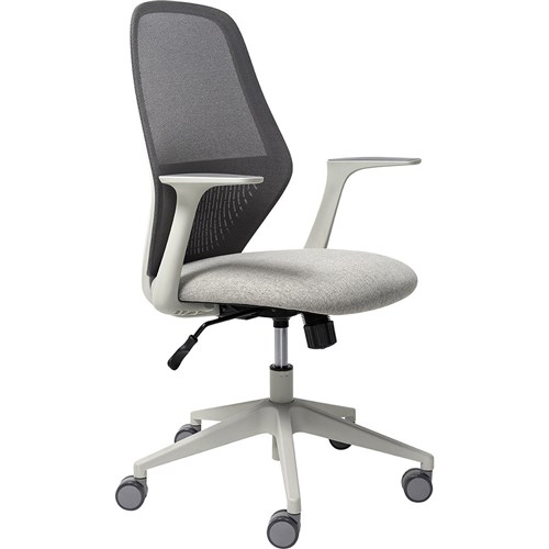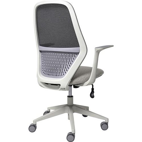 • Composition: Breathable mesh back and fabric upholstered seat.