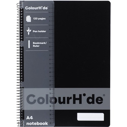 ColourHide Spiral Notebook A4 Side Bound 120 Page Black