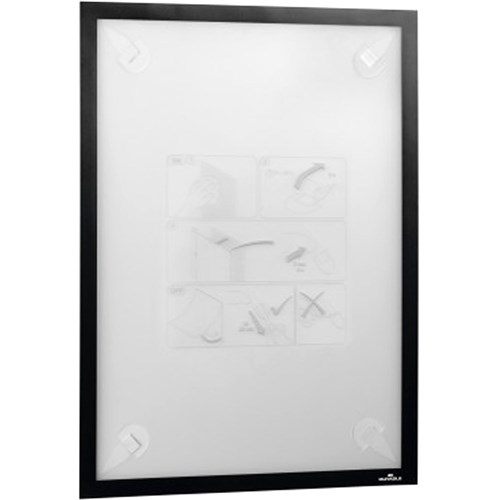 • Quick insertion and exchange of documents via a fold-back magnetic frame.