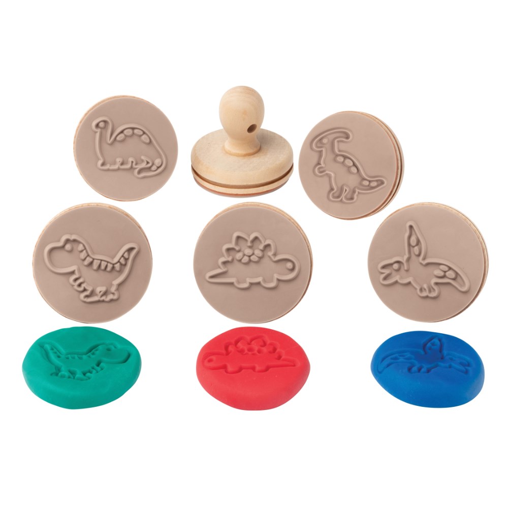 Educational Colours Wooden Dough Stamps Dinosaurs Box Of 6