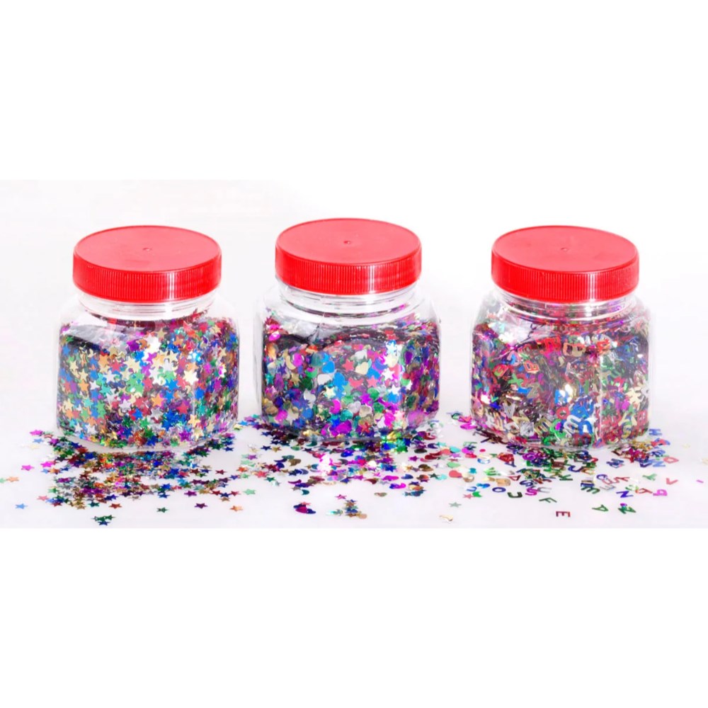 Jasart Glitter Scatters 100gm Jar Shapes Assorted Colours