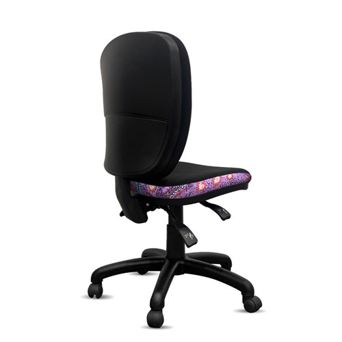 • A unique commercial fabrics designed by Andrea Adamson (Indigenous Artist) combined with K2 Black Fabric to upholster the chair.