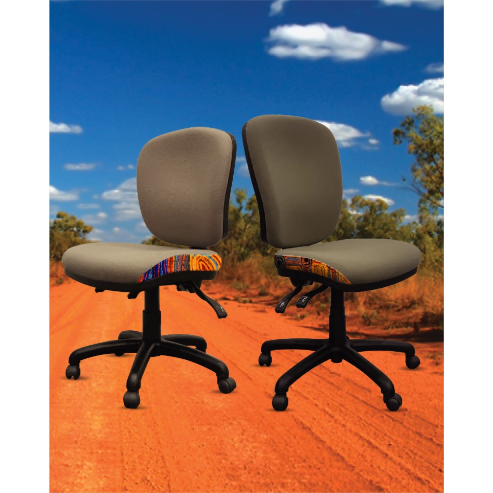 • A unique commercial fabrics designed by Mary Napangardi Brown (Indigenous artist) combined with K2 Mist Grey Fabric to upholster the chair.