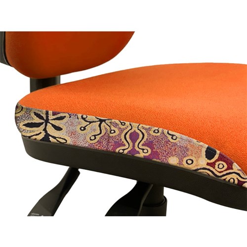 • A unique commercial fabrics designed by Paddy Stewart (Indigenous artist) combined with K2 Golden Orange Fabric to upholster the chair.