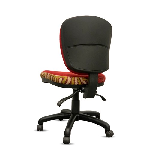• A unique commercial fabrics designed by Damien and Yilpi Marks (Indigenous artists) combined with K2 Red Ochre Fabric to upholster the chair.