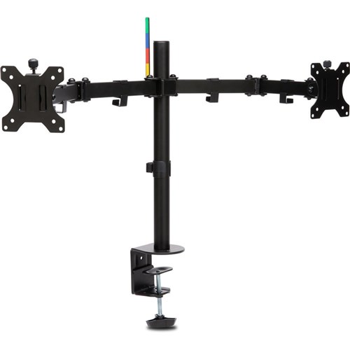 • Quick-release VESA 75/100 mounting plate accommodates monitors up to 34\" and 8kg per arm.
