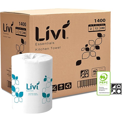 Livi Essentials Kitchen Towel Roll 2 Ply 240 Sheets Box Of 12