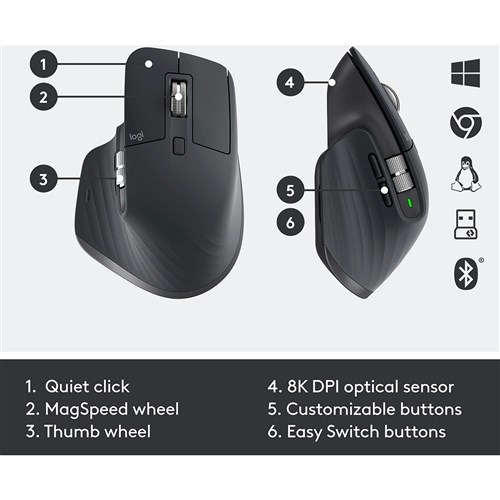 • Speed and precision upgrade with 8000 DPI tracking for high-resolution monitors and MagSpeel Wheel scrolling, up to 1000 lines per second or precision line-by-line mode.