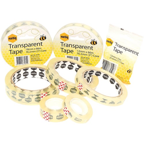 Marbig Office Tape 12mm x 66m 76.2mm Core Clear