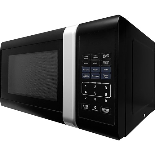 • Easy clean black conventional 23L microwave with LED display and grey interior, speedy one touch cooking and incremental power settings.