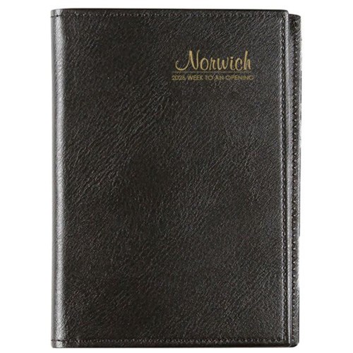 • Featuring a stylish flexible leather grain cover finished with the famous gold foil 'Norwich' logo, stitched edges and fine ivory paper.