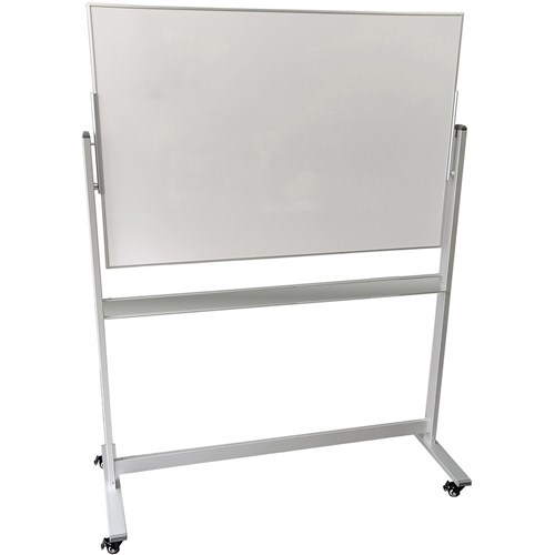 • Double sided magnetic whiteboard pivots 360 degrees.