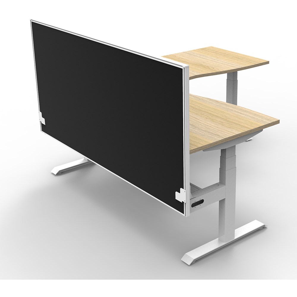 • Includes pinnable privacy screen in black fabric with matching white powder coated frame. 900mm H x 30mm T.