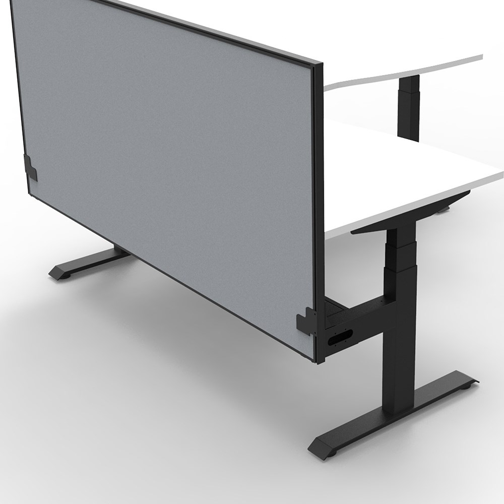 • Includes pinnable privacy screen in grey fabric with matching black powder coated frame. 900mm H x 30mm T.