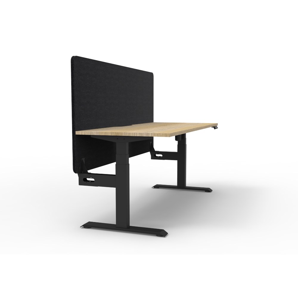 • Electric height adjustable single sided workstation with Natural Oak top and Black Satin frame, Black Eco screen.
