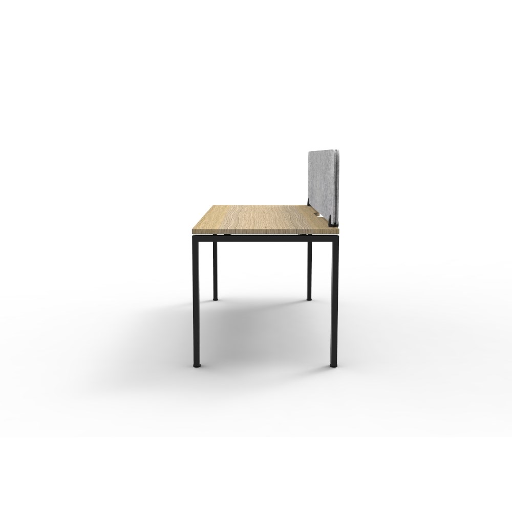 • Natural Oak worksurface with rigid edging and 410mmW x 50mmD scallop cable access. Black Satin powder coat frame. Eco screen.