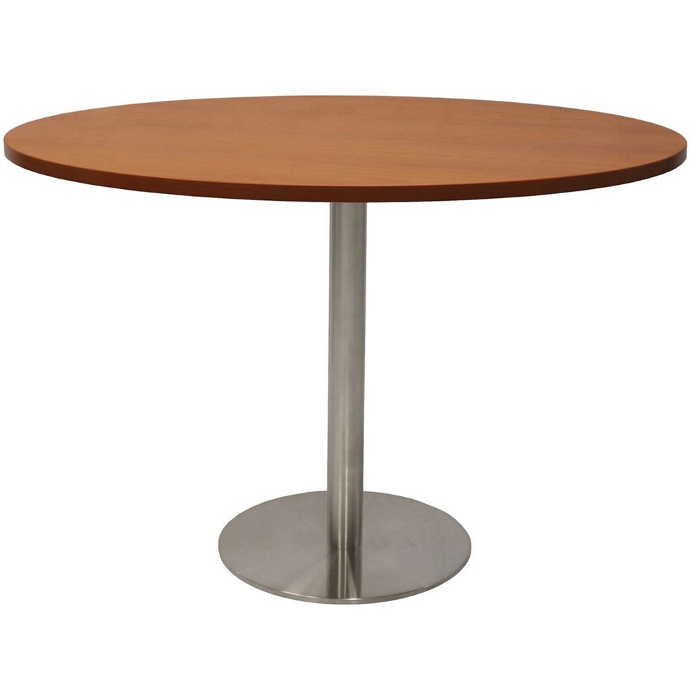 Rapidline Estillo Disc Base Round Table 1200D x 755mmH Cherry Top Silver Base