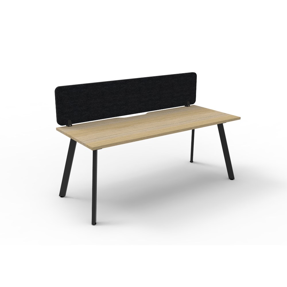 • Natural Oak worksurface with rigid edging and 410mmW x 50mmD scallop cable access. Black Satin powder coat frame. Eco screen.