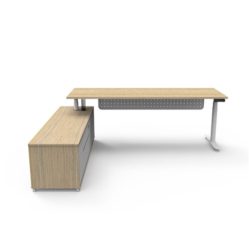 Rapidline Halo+ Executive Desk + LHS Cabinet + Panel 2270W x 1936D x 620-1270mmH Oak/White