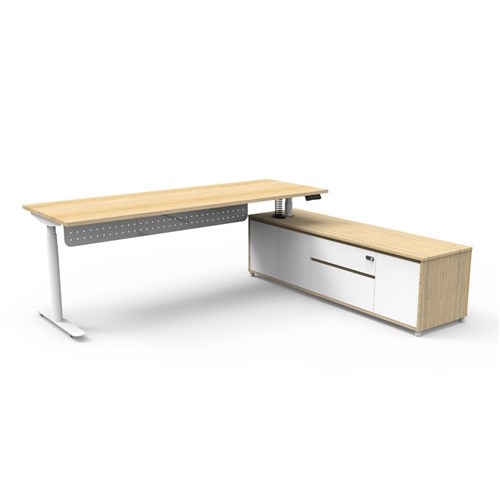 Rapidline Halo+ Executive Desk + RHS Cabinet + Panel 2270W x 1936D x 620-1270mmH Oak/White