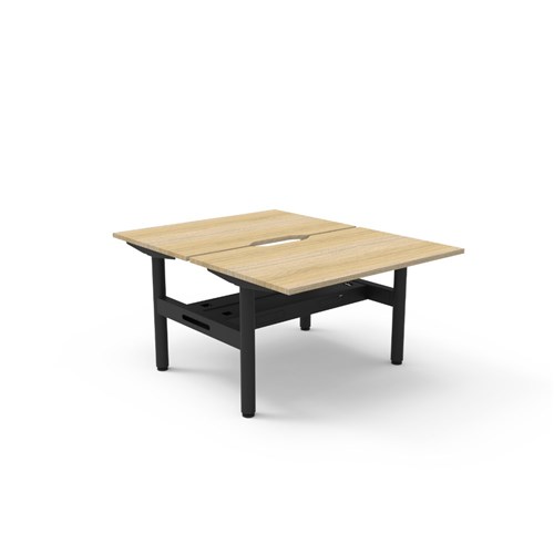 Rapidline Halo Static Back To Back Workstation + Cable Tray 2 Person 1200Wx730mmH Oak/Blk