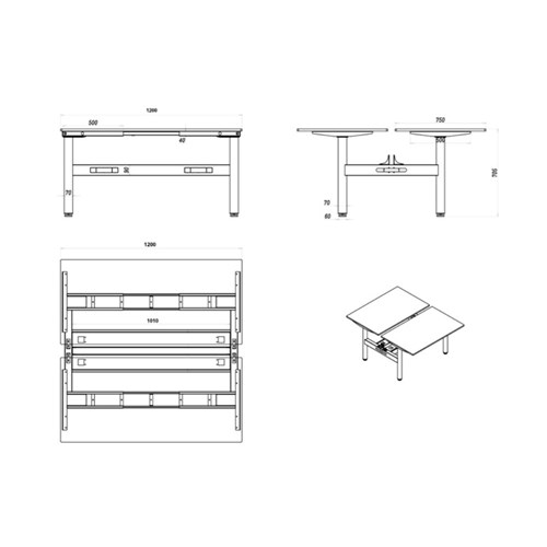 • Per User Dimensions: 1200W x 750D x 730mmH.