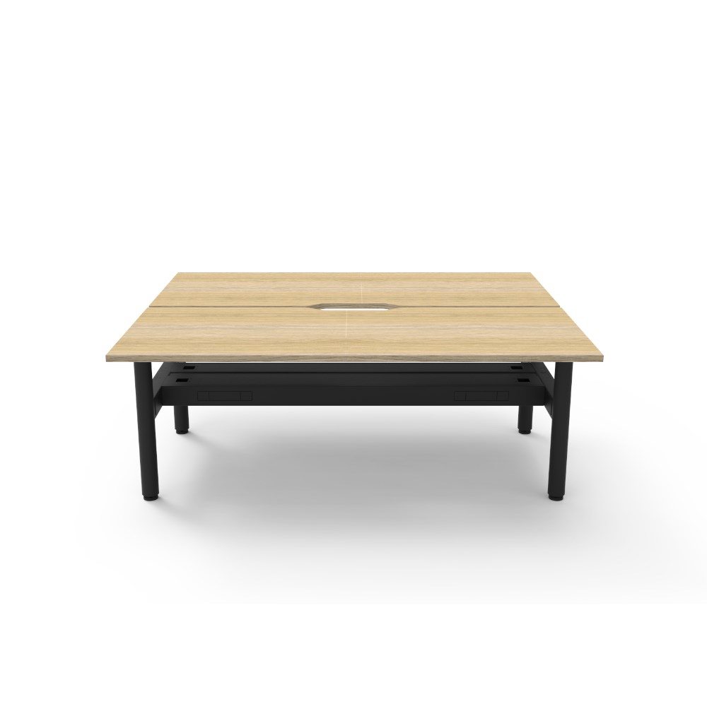 • Natural Oak top Black Satin frame. Double sided workstation with cable tray.