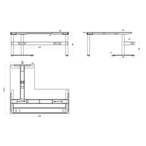 • Desk Dimensions: 1800W x 1500W x 750D x 730mmH. Height With Screen: 1330mm.