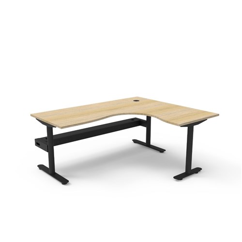 • Natural Oak top Black Satin frame. Corner workstation with cable tray.
