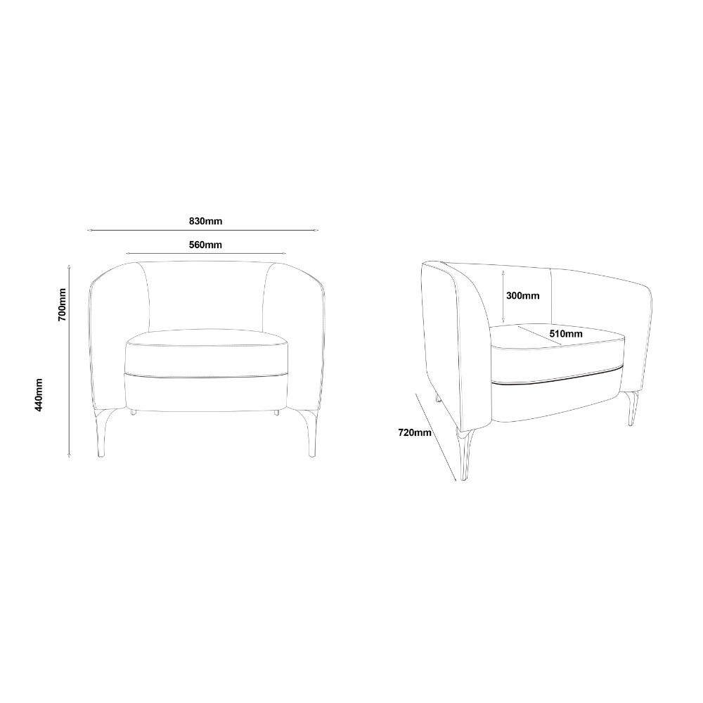 • Seat Width: 560mm.