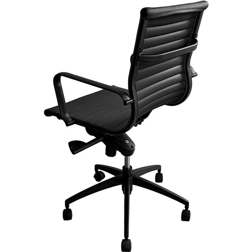 Rapidline PU605M Boardroom Chair Black Base And Arms Medium Back Black Ribbed PU
