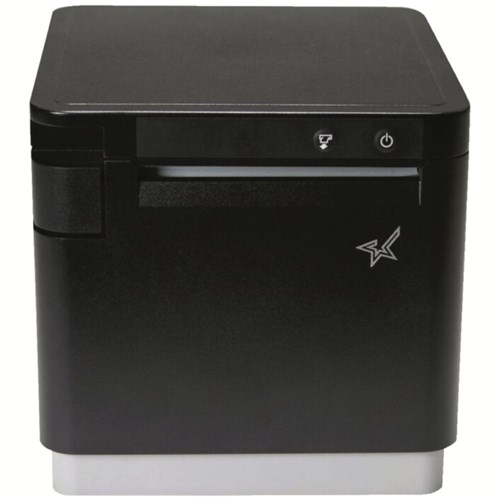 • It is a compact, 3-inch front-loading and front-exiting printer in black.