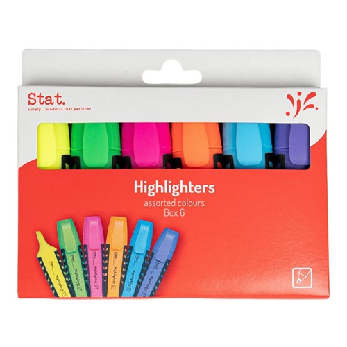 Stat Rubberised Grip Highlighter Chisel 2-5mm Assorted Colours Wallet Of 6