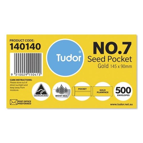 TUDOR NO. 7 SEED GOLD ENVELOPE Moist Seal Pocket (Recycled) 145x90mm Pack of 500