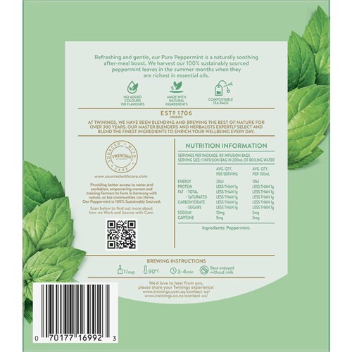 Twinings Pure Peppermint Tea Bags Box Of 80