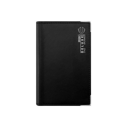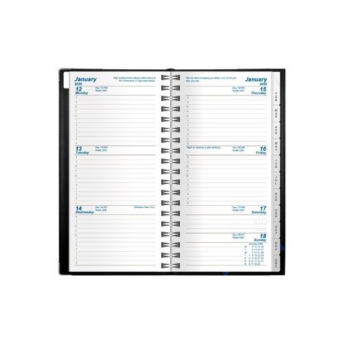• Ribbon marker. Tabs, Lay flat opening. Translucent pocket.