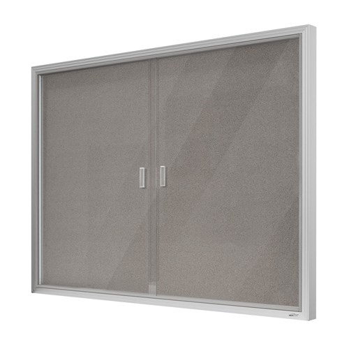 Visionchart Be Noticed Sliding 2 Door Notice Case 1220W x 48D x 915mmH Silver/Grey Fabric