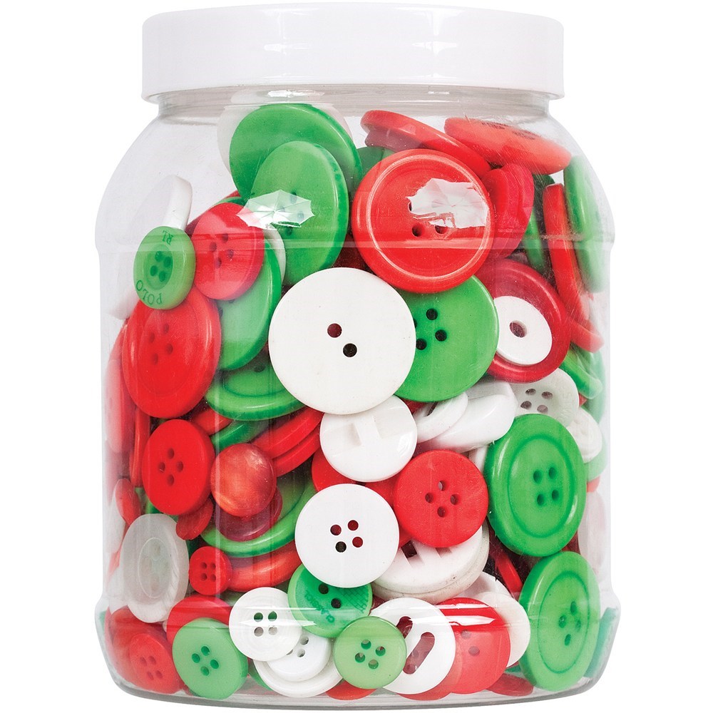 Zart Buttons Bright Christmas Colours Approximately 1400 Pieces Jar 600gm